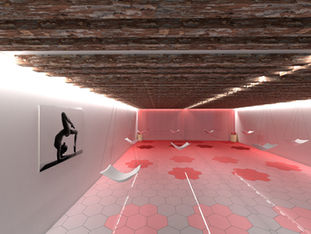 Los techos, al tener gran altura, se realizarán en color oscuro para crear un espacio más acogedor.
